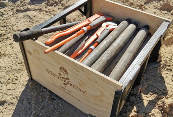 We present the directional pipe jacking machine by NODIGMARKET24, model: Cobra-50 with radio locating and steering system.