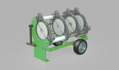 Korpus główny zapewnia podparcie, mocowanie i centrowanie spawanych rur z tworzywa sztucznego za pomocą dwóch ruchomych i dwóch stałych zacisków.